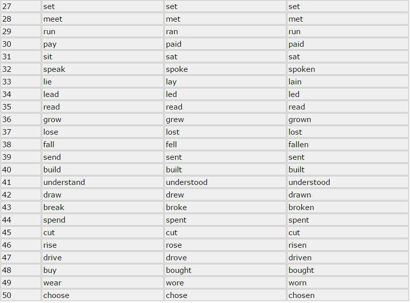 جدول ازمنة اللغة الانجليزية Pdf